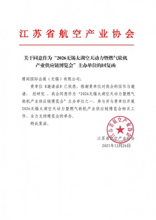 2026无锡太湖空天动力暨燃气轮机产业供应链博览会由中国国防工业企业协会、中国机电产品流通协会、无锡太湖空天动力研究院、江苏省航空产业协会联合主办,无锡企业创新服务协会等机构协办,江苏三角洲国际会展(集团)有限公司、博闻国际会展(无锡)有限公司承办。